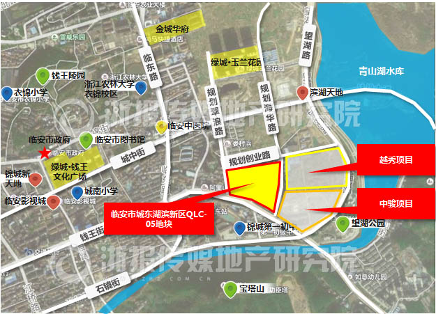 临安市城东湖滨新区QLC-05地块东至海华路,南至钱王大街,西至规划翠浪路,北至创业路,出让面积45565平方米,容积率2.5,可建面积113913平方米。